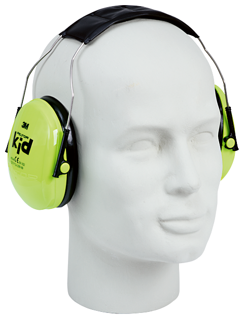 Casque anti-bruit 3M PELTOR pour enfants, vert fluorescent, coussinets remplaçables remplis de liquide et de mousse, serre-tête en matière synthétique et fixations ajustables en fils d’acier. Poids env. 175 g.(0-7 ans), SNR 27 dB