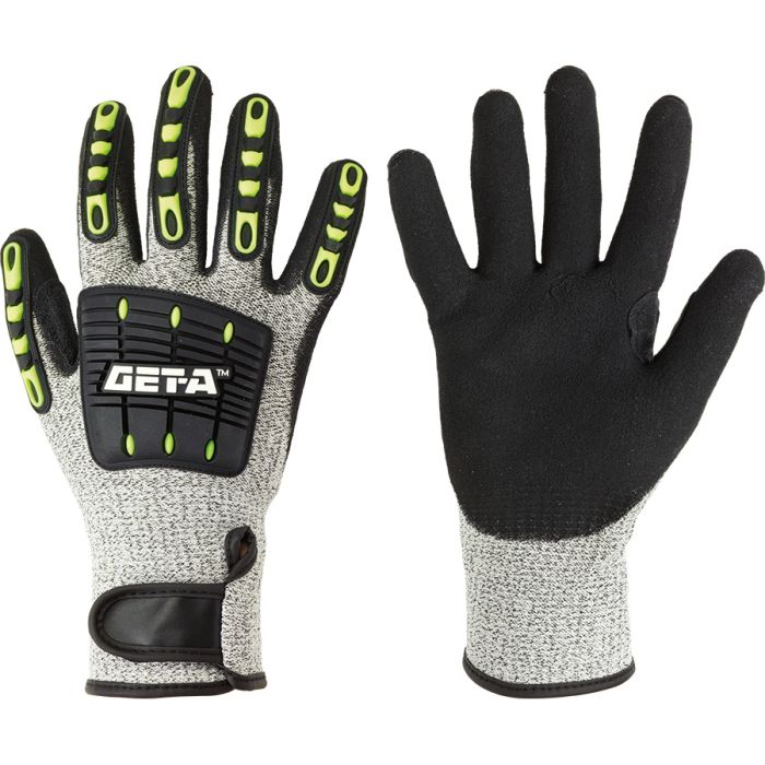 Gants résistants pour les travaux avec des tôles à arêtes vives, des pièces moulées, des bandes d'acier, etc. Les protections en caoutchouc protègent les doigts et les articulations de la main contre les coups et les coupures.